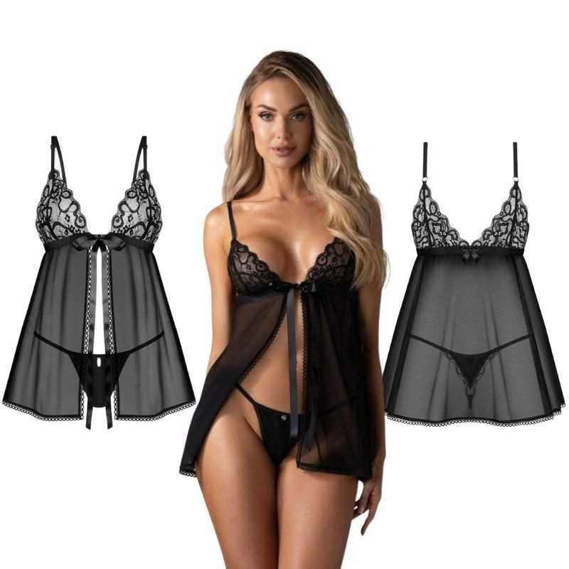 Lingerie - Pesu Obsessive - Blomentis babydoll & thong Black XS/S | Eros.ee Erootikatooted